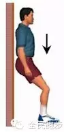 背部靠墙,双脚位于身前,慢慢的弯曲膝盖至小于90度角保持膝盖不超过你的脚趾,保持一段时间后伸直膝盖。