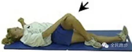 平躺,伤腿跨在另外一条腿上面,用和伤腿相对的手向肩膀方向拉伤腿膝盖,保持脚平放在地上,保持直到感到臀部外侧被拉伸。