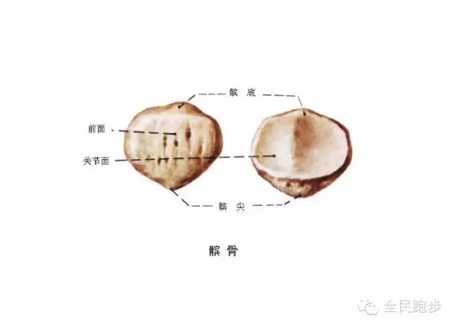 髌骨位于膝关节的前方,在膝关节运动,如下蹲、起立和跳跃等动作中起着力量传递和支点的作用。同时,髌骨也是维持膝关节稳定的主要装置之一。这个部位对跑者来说,意义尤其重大。