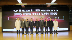 随后,主席台嘉宾共同按下大屏幕,瓦里安VitalBeam智能加速器正式开机投入使用。