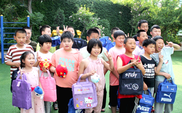 表演结束后,参加本次活动的党员同志们把自筹资金购买的40套书包、文具盒等送到孩子们手上。拿着精美又实用的礼物,一个个小脸蛋上都露出了灿烂的笑容。