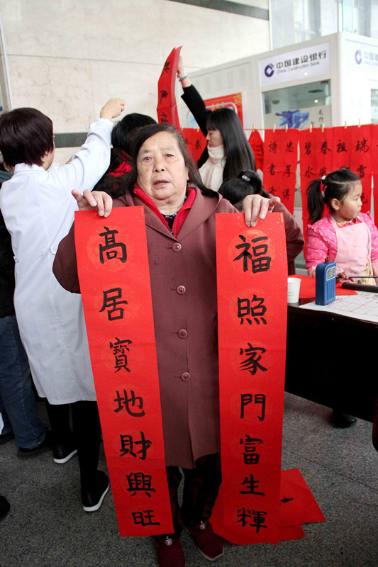 红红的对联、浓浓的祝福,映红了张张笑脸,更温暖了大家的心窝