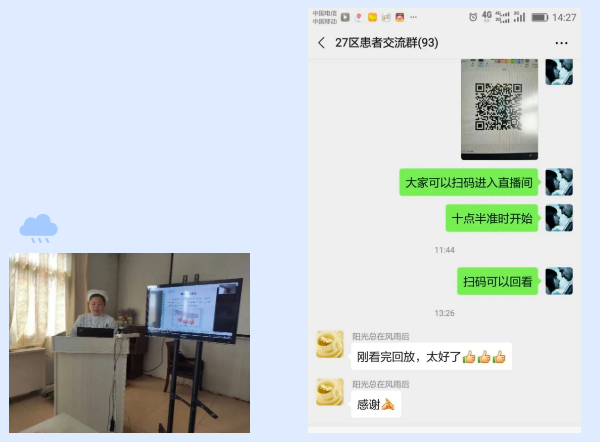 疫情期间,对患者的关心也没有中断,我们在网上制作了直播视频,对患者关心的问题进行科普,并且在线交流,获得了糖友们的一致好评!