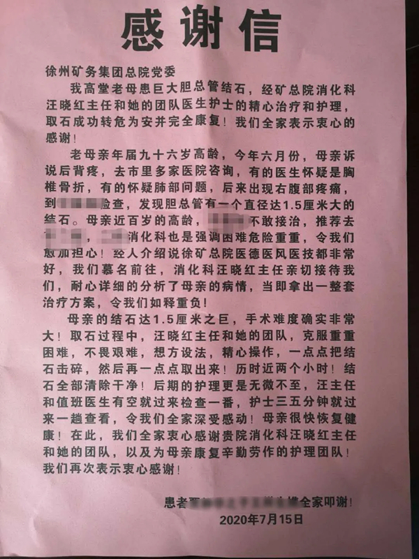 这次徐矿总医院的医生也让他感激不尽,医生精湛的医术和细心的照顾都让家人感动,他们会好好照顾老人,让大家的努力不白费。