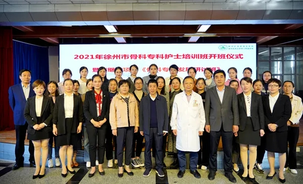 10月12日下午,徐矿总医院骨科专科护士培训班开班仪式暨徐州市继续教育骨科专科发展研讨班在六楼多功能会议室隆重举行。徐州市卫健委医政处处长孙劲松、徐州市护理学会理事长夏静、徐矿总医院院长荣良群、副院长魏学杰、护理部主任宋红、骨科主任朱自强、各科护士长、部分授课老师和来自徐州市县各级医院的23名学员参加开班仪式。