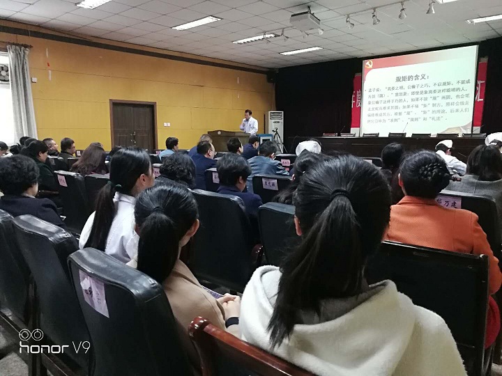副院长曹爱红从讲规矩、守纪律、尽责任、做奉献四个方面进行讲解。“俗话说,无规矩不成方圆,我们党多年艰难曲折的奋斗,可以说正是靠着纪律和规矩走过来的。‘守纪律讲规矩’的重点是遵守政治纪律,是党的生命力。守纪律是底线,靠自觉。而党章是全党必须遵循的总章程,也是总规矩。讲规矩即是讲文明,建设和谐社会,首要的问题是讲规矩、守规矩。一个国家、一个民族、一个地方文明程度的高低,取决于这个国家、这个民族、这个地方国民的文明素养,而国民的文明素养又直接取决于国民讲规矩、守规矩的程度。”除此之外还要营造守规矩的氛围。