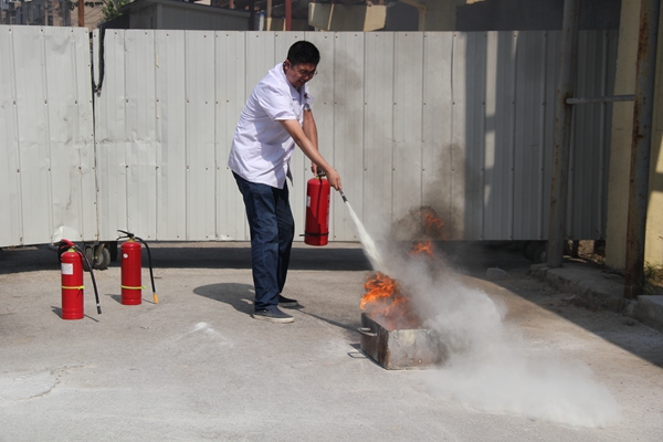 活动中,演练模拟了火灾发生现场,保卫科相关负责人现场为职工纤细讲解了灭火器的正确使用方法与灭火步骤,并将灭火器提、拉、握、压的操作步骤进行了详细的讲解与操作,为了使员工们提高实际操作能力,特意安排了灭火演练。在演练中,院各科室的代表纷纷到现场拿起灭火器按照使用方法和灭火步骤进行实操灭火,现场气氛十分活跃,整场演练井然有序。