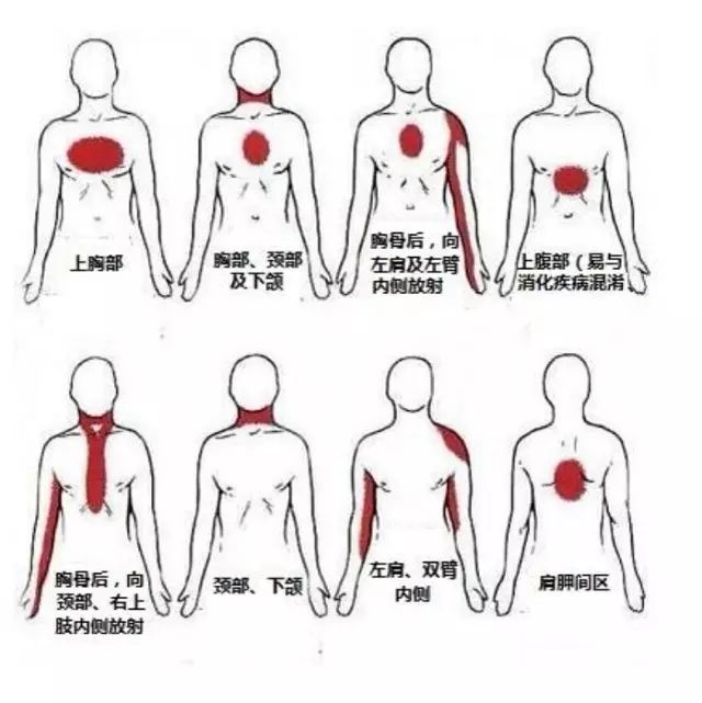 徐矿总医院心内科主任祁春梅主任介绍说,很多人都知道胸疼是急性心肌梗死的主要症状,其实胸疼可以不典型甚至不出现,另外疼痛的部位可能也不仅仅局限于胸部。包括烧心、消化不良;背部、下巴、颈部、肩部的不适;气短、恶心、呕吐都可能是急性心肌梗死的表现形式。有很多老年人、女性和糖尿病患者症状会不典型,必须引起大家的重视。作者个人就曾经遇到过因为乏力、晕厥、呕吐呼叫120的心梗患者。