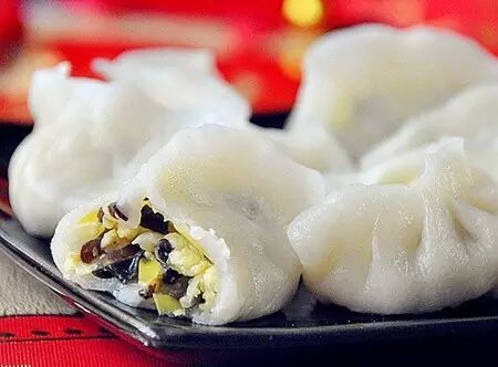 相比之下,蛋类和蔬菜为主要原料的素馅较为健康,其中油脂来自于植物油,蔬菜的比例也比较大。由于蛋类含磷较多,这类馅料应当配合富含钙、钾和镁的绿叶蔬菜,以及虾皮、海藻等原料,以促进酸碱平衡。而粉丝之类纯淀粉材料营养价值低,不应作为馅料的主要原料。