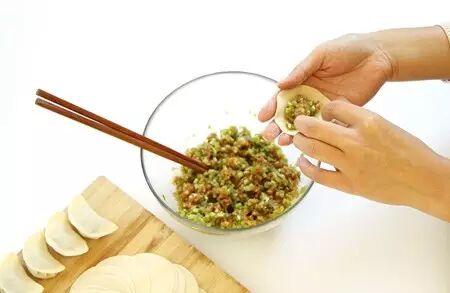 按照膳食酸碱平衡的原则,“酸性”的肉蛋类和精白面粉,应当与“碱性”的蔬菜原料相平衡,最好一份肉类搭配三份未挤汁的蔬菜原料,而且馅料所用肉类为九分瘦肉,不要再添加动物油和植物油,提高蔬菜用量,才能降低饱和脂肪和热量的摄入,达到真正的营养平衡。