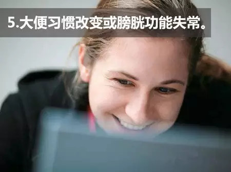5.大便习惯改变或膀胱功能失常。便秘或腹泻频繁,尿血、尿痛或膀胱功能失常等,都可能预示肠癌或膀胱癌等。