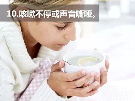 10.咳嗽不停或声音嘶哑。这是喉癌的主要症状之一。如果咳嗽持续很长时间,则应当心肺癌或声带癌。
