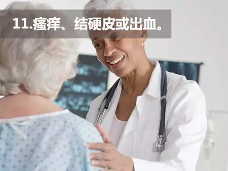 11.瘙痒、结硬皮或出血。这些症状不太常见,但不容忽视。皮肤若出现异常斑块持续数周挥之不去,应及时看医生。