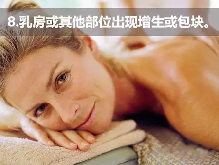 8.乳房或身体其他部位出现增生或包块。这些症状也可能是其他原因所致,而非癌症,需要上医院检查确诊。