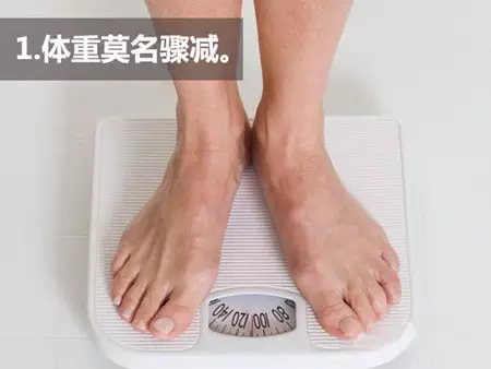 1.体重莫名骤减。体重在几个月中明显降低,而且原因不明,应注意胰腺癌、胃癌、食道癌或肺癌。