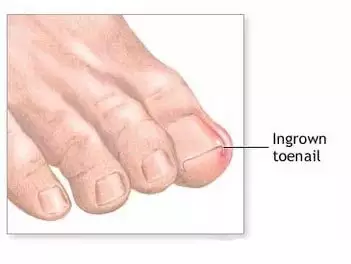 內嵌趾甲(ingrown toenail)是鞋子太小或太紧,行走时一直伤到脚尖造成的。脚踝关节扭伤则是地不平,脚踝无力或控制不当导致。