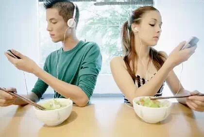 很多人甚至青少年都习惯手机不离身,打电话、发短信、更新微博微信……一刻闲不下来。吃饭时也是如此,常常饭送进口里,眼睛还始终盯着手机,吃的是什么都没察觉。美国明尼苏达大学护理学院儿童和家庭健康促进研究中心发现,父母如果允许孩子在就餐期间玩手机,孩子的饮食结构往往很单一,而且更喜欢高热量食物,容易营养不良,家庭氛围也相对较差。因此,研究人员建议,就餐时最好停止使用电子产品,特别是未成年的孩子,家长更应对其行为进行限制。