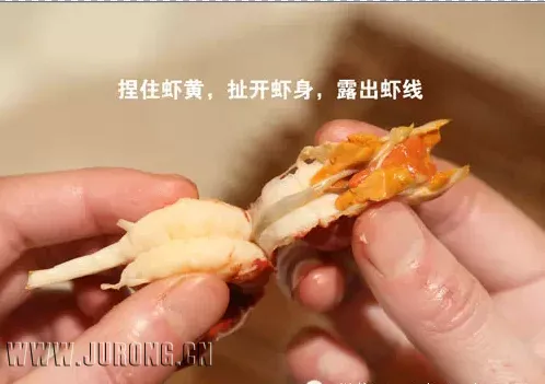 虾黄含有大量人体必需的蛋白质、脂肪、磷脂、维生素等营养素,营养丰富,是虾身上最宝贵的地方,一般位于虾头位置。怎么吃虾黄才最爽?来看图: