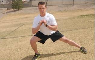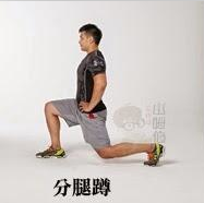 分腿下蹲。站立,一腿在前,一腿后,臀部放平,下蹲至后腿膝盖几乎触地,然后站起,继续30秒,换腿重复。
