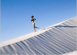 在一个倾斜坡度上,负重(背包重量逐级增加)走到顶端然后以小步跳下膝盖硝弯,以吸收下落过程中的震动每次50米,做46次。高级别者可增加负重并将距离延伸至100米。