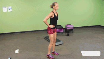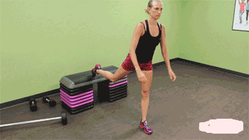 抬起右腿搁在条窄板凳上,提起左腿,作跨过板凳状,但只下去一点点,然后回到起始状态。整个动作中以同一条腿保持平衡。每条腿重复30秒。